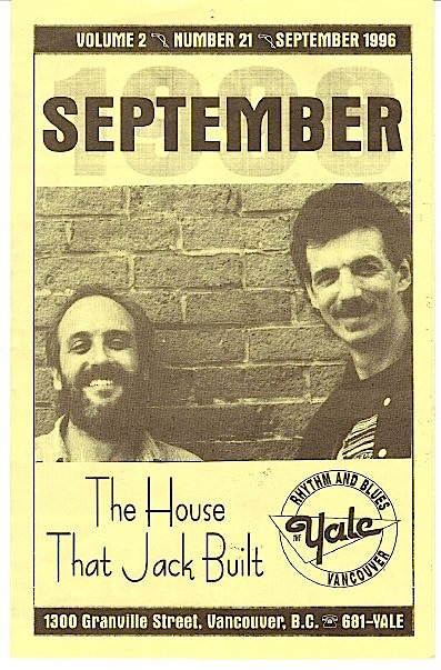 In '96 the Yale Hotel was dubbed "the House That Jack Built", honoring me for hosting jam sessions, leading the house band, and procurring blues talent from all over N. America for nearly 10 years. Also pictured is Muddy Fraser, a good friend and band mate from the 'old days'.